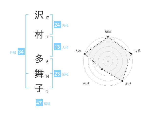 沢村 多舞子さんを姓名の画数から五運を鑑定
