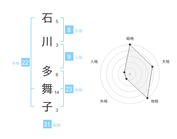 石川 多舞子さんを姓名の画数から五運を鑑定