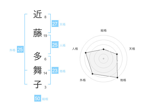 近藤 多舞子さんを姓名の画数から五運を鑑定