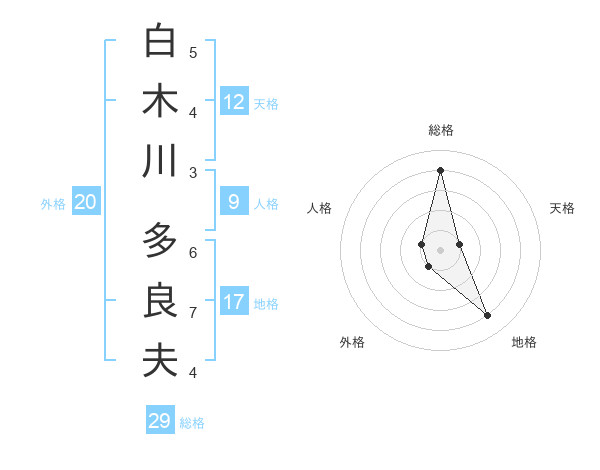 白木川 多良夫さんを姓名の画数から五運を鑑定