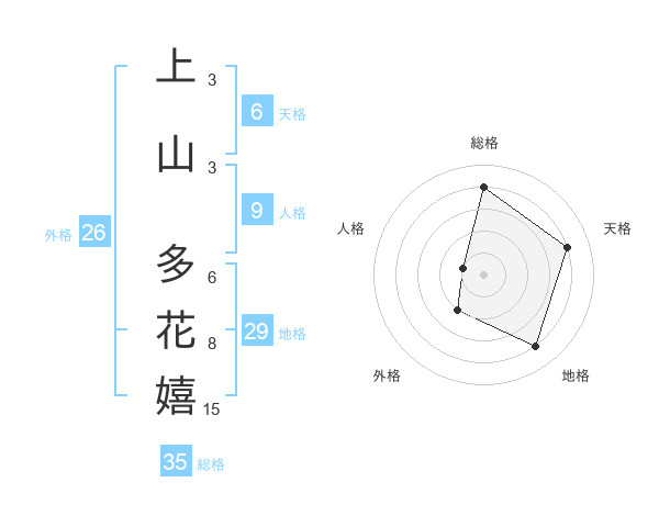 上山 多花嬉さんを姓名の画数から五運を鑑定