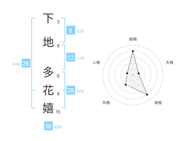 下地 多花嬉さんを姓名の画数から五運を鑑定