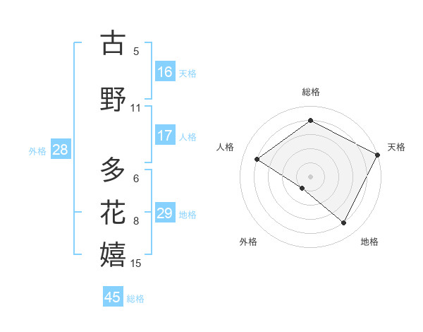 古野 多花嬉さんを姓名の画数から五運を鑑定