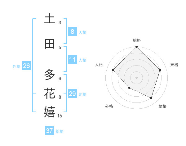 土田 多花嬉さんを姓名の画数から五運を鑑定