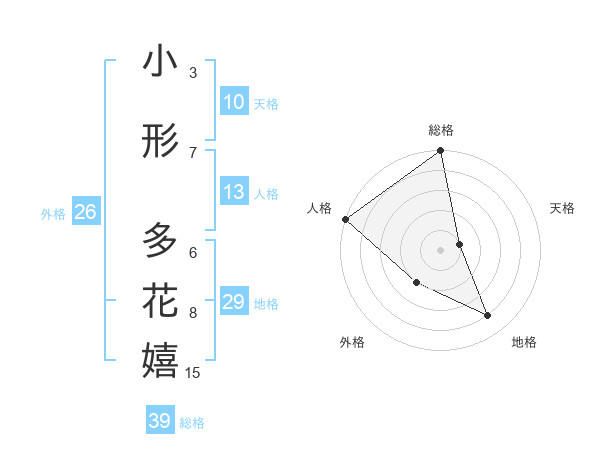 小形 多花嬉さんを姓名の画数から五運を鑑定