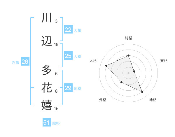 川辺 多花嬉さんを姓名の画数から五運を鑑定