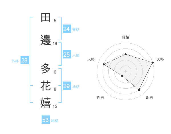 田邊 多花嬉さんを姓名の画数から五運を鑑定