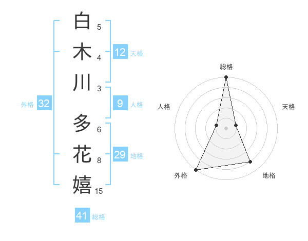 白木川 多花嬉さんを姓名の画数から五運を鑑定
