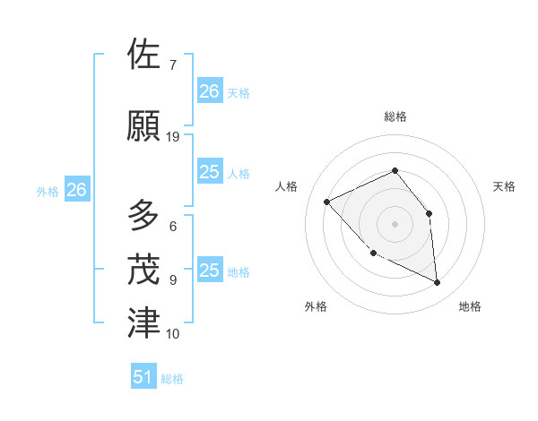 佐願 多茂津さんの総格は51画の3点!