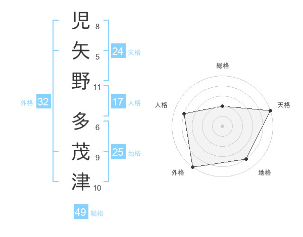 児矢野 多茂津さんを姓名の画数から五運を鑑定