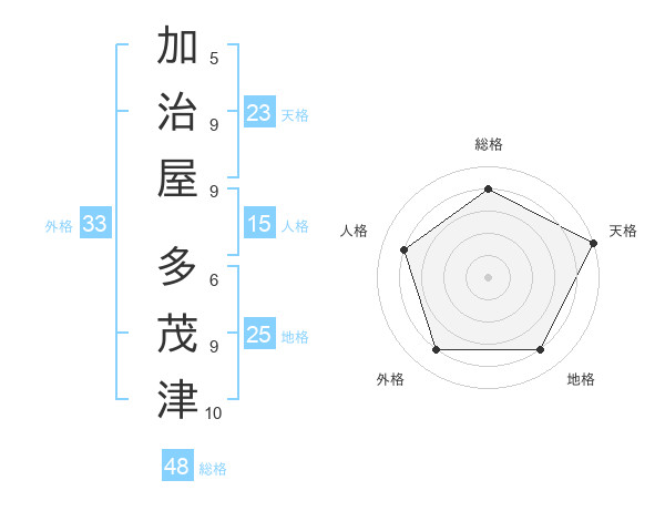加治屋 多茂津さんを姓名の画数から五運を鑑定