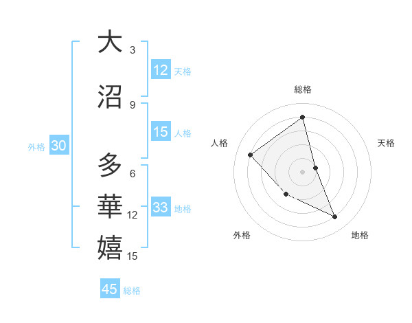 大沼 多華嬉さんを姓名の画数から五運を鑑定