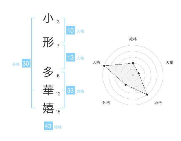 小形 多華嬉さんの総格は43画の2点!