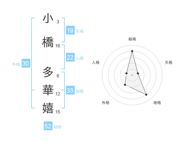 小橋 多華嬉さんを姓名の画数から五運を鑑定