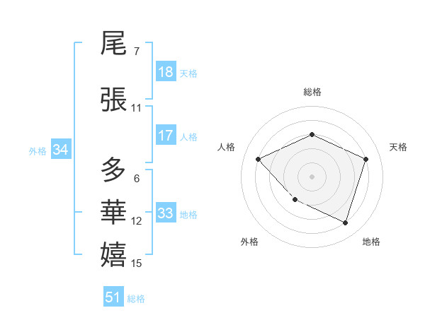 尾張 多華嬉さんを姓名の画数から五運を鑑定