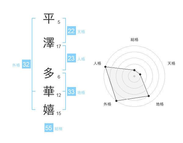 平澤 多華嬉さんを姓名の画数から五運を鑑定