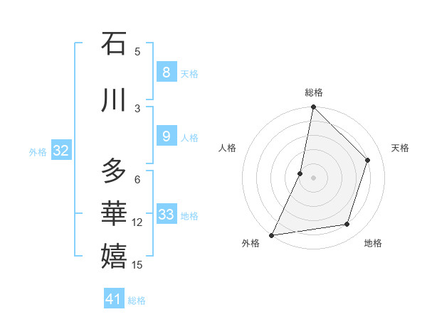 石川 多華嬉さんの外格は32画の5点!