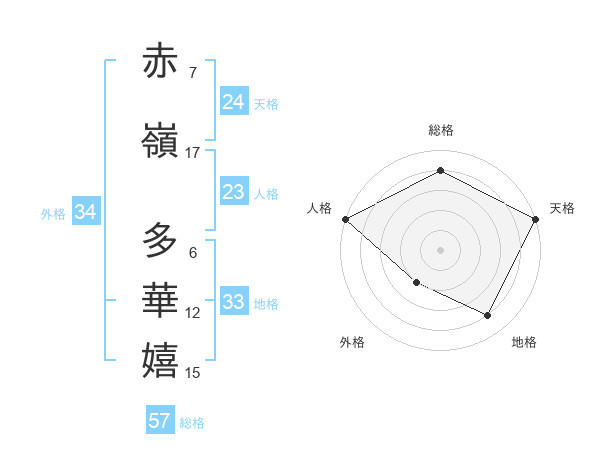 赤嶺 多華嬉さんの天格は24画の5点!