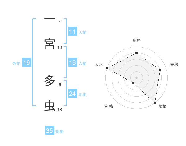 一宮 多虫さんの総格は35画の4点!