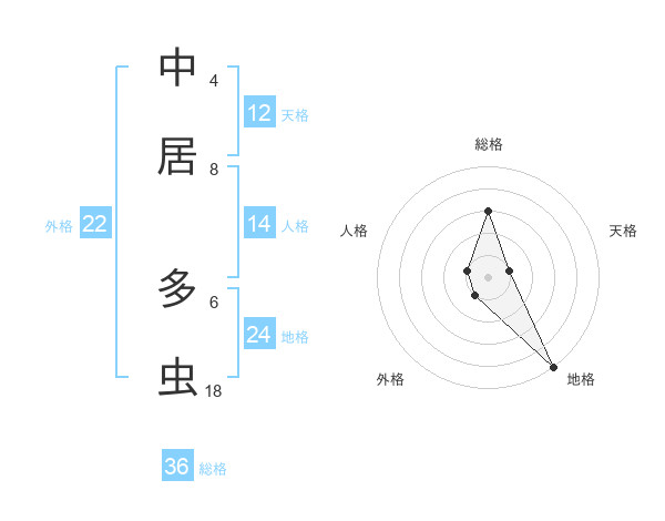 中居 多虫さんの天格は12画の1点!