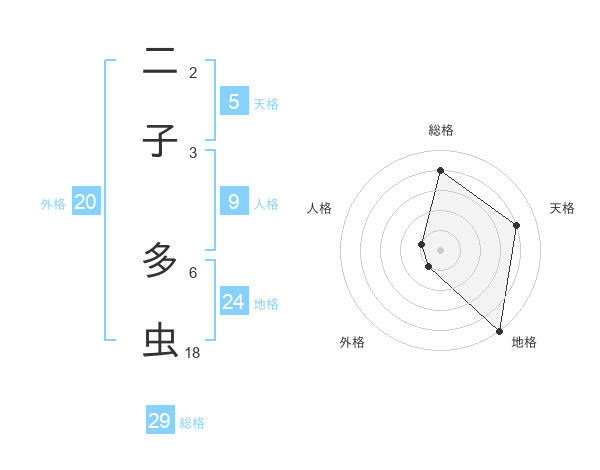 二子 多虫さんの総格は29画の4点!