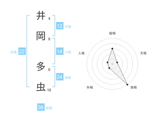 井岡 多虫さんを姓名の画数から五運を鑑定