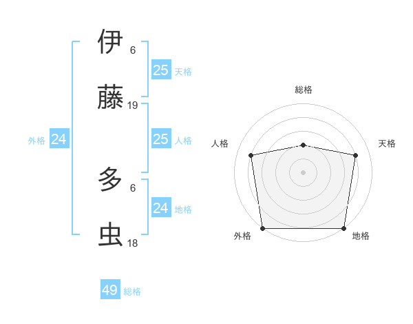 伊藤 多虫さんを姓名の画数から五運を鑑定