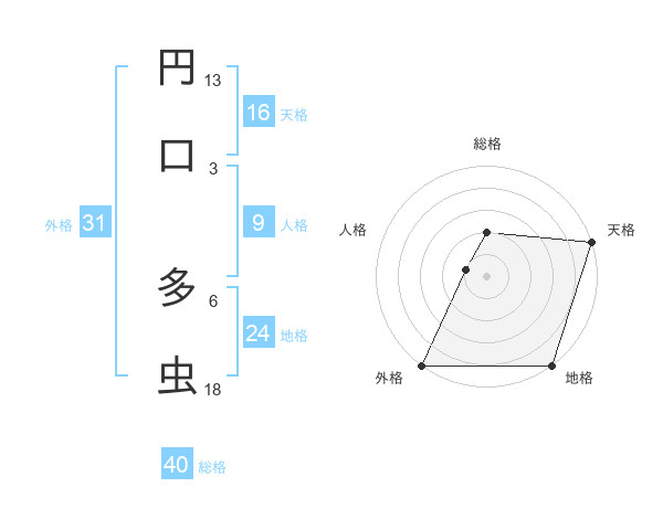 円口 多虫さんの総格は40画の2点!