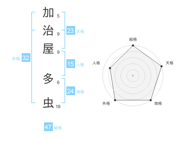 加治屋 多虫さんを姓名の画数から五運を鑑定