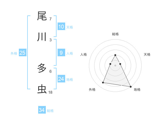 尾川 多虫さんの総格は34画の2点!