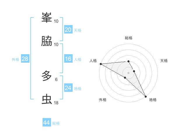峯脇 多虫さんを姓名の画数から五運を鑑定