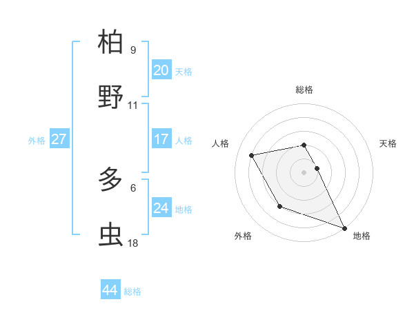 柏野 多虫さんを姓名の画数から五運を鑑定