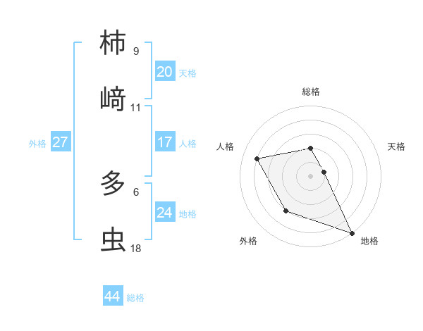 柿﨑 多虫さんを姓名の画数から五運を鑑定