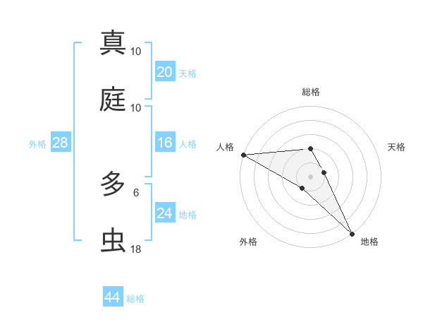 真庭 多虫さんを姓名の画数から五運を鑑定
