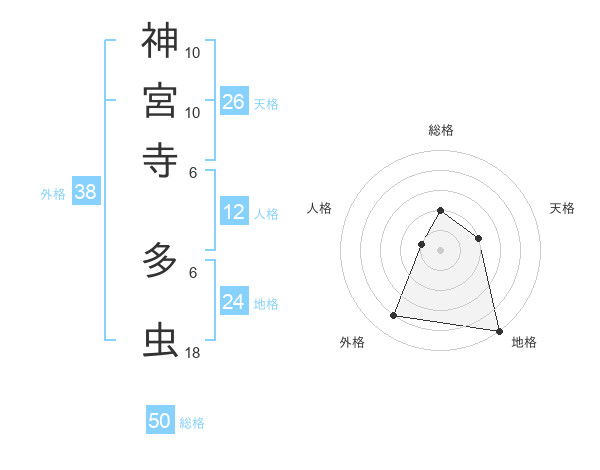 神宮寺 多虫さんを姓名の画数から五運を鑑定