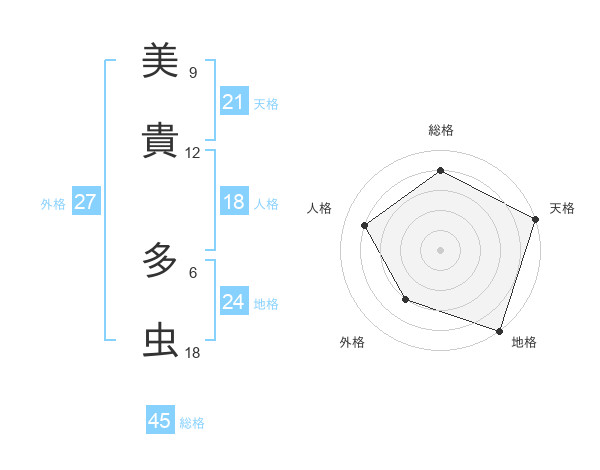 美貴 多虫さんを姓名の画数から五運を鑑定