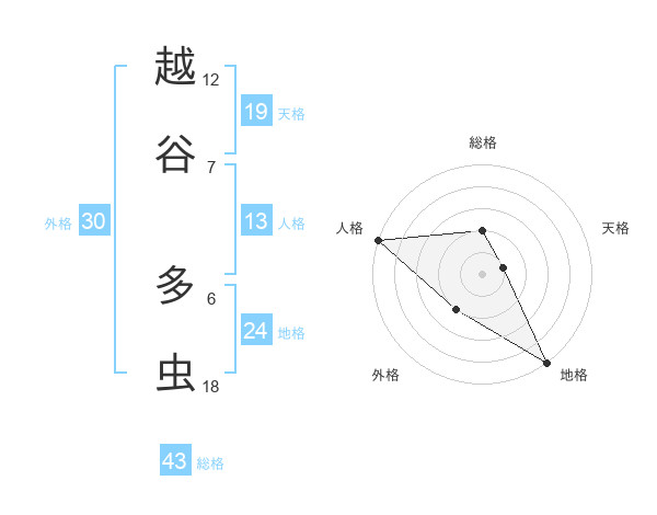 越谷 多虫さんの総格は43画の2点!