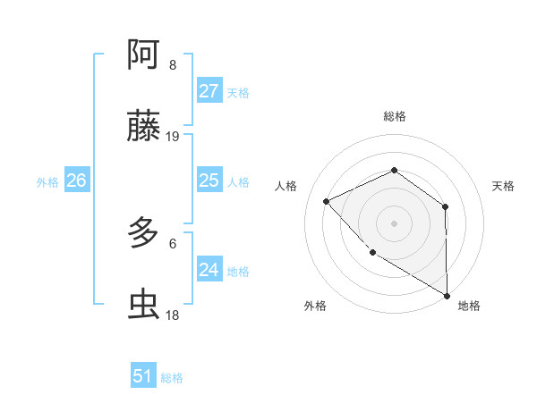 阿藤 多虫さんの総格は51画の3点!