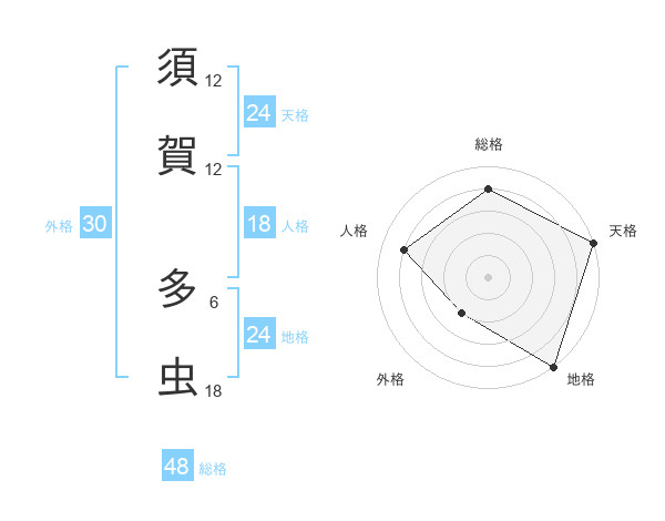 須賀 多虫さんを姓名の画数から五運を鑑定