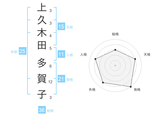 上久木田 多賀子さんを姓名の画数から五運を鑑定