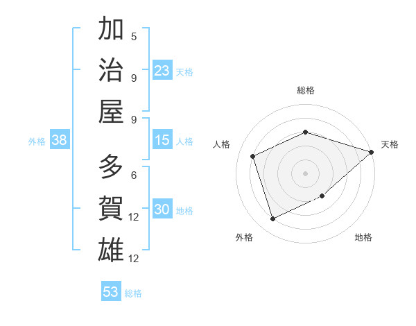 加治屋 多賀雄さんを姓名の画数から五運を鑑定