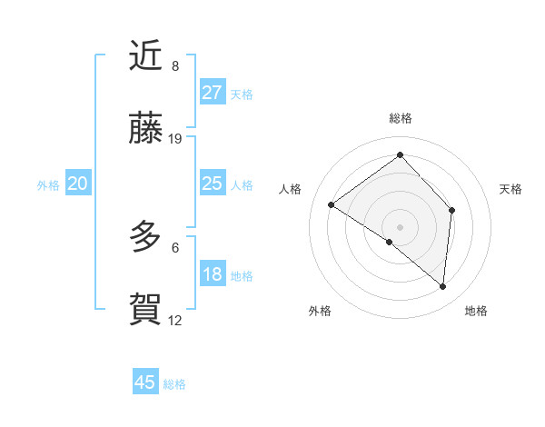 近藤 多賀さんを姓名の画数から五運を鑑定