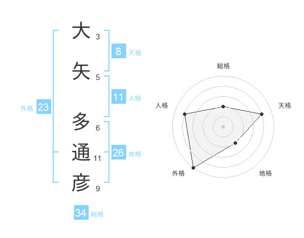 大矢 多通彦さんを姓名の画数から五運を鑑定