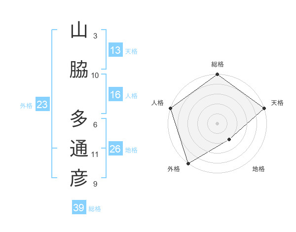 山脇 多通彦さんを姓名の画数から五運を鑑定