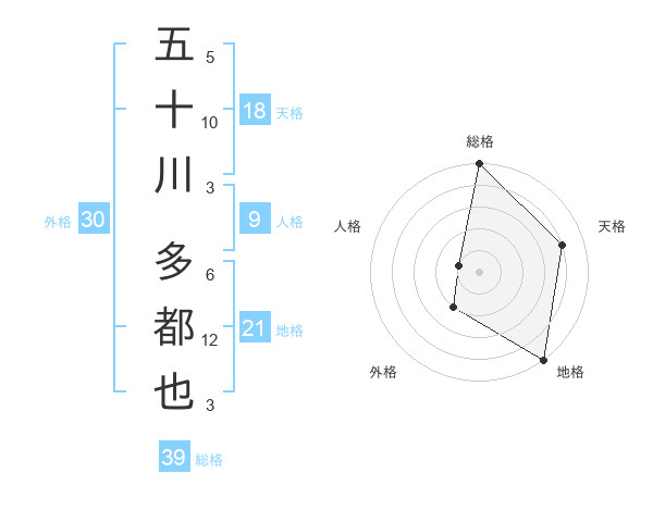 五十川 多都也さんの総格は39画の5点!