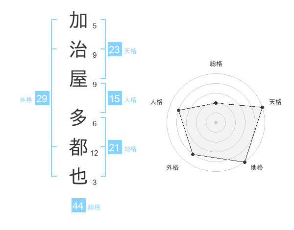 加治屋 多都也さんの天格は23画の5点