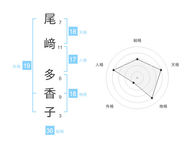 尾﨑 多香子さんを姓名の画数から五運を鑑定