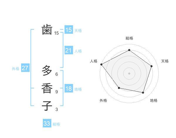 歯 多香子さんの人格は21画の5点!