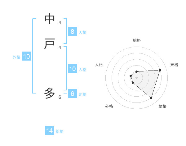 中戸 多さんの天格は8画の4点!