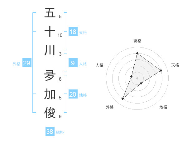 五十川 夛加俊さんを姓名の画数から五運を鑑定